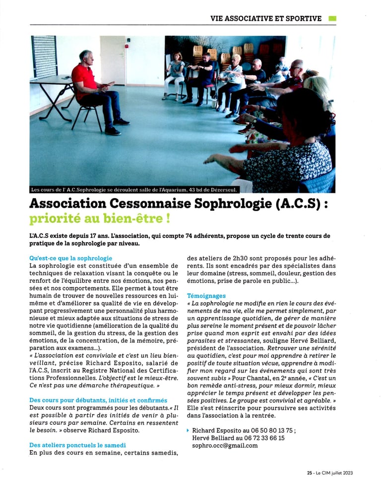 Cette année nous allons fêter les 20 ans de notre Association Cessonnaise de Sophrologie.